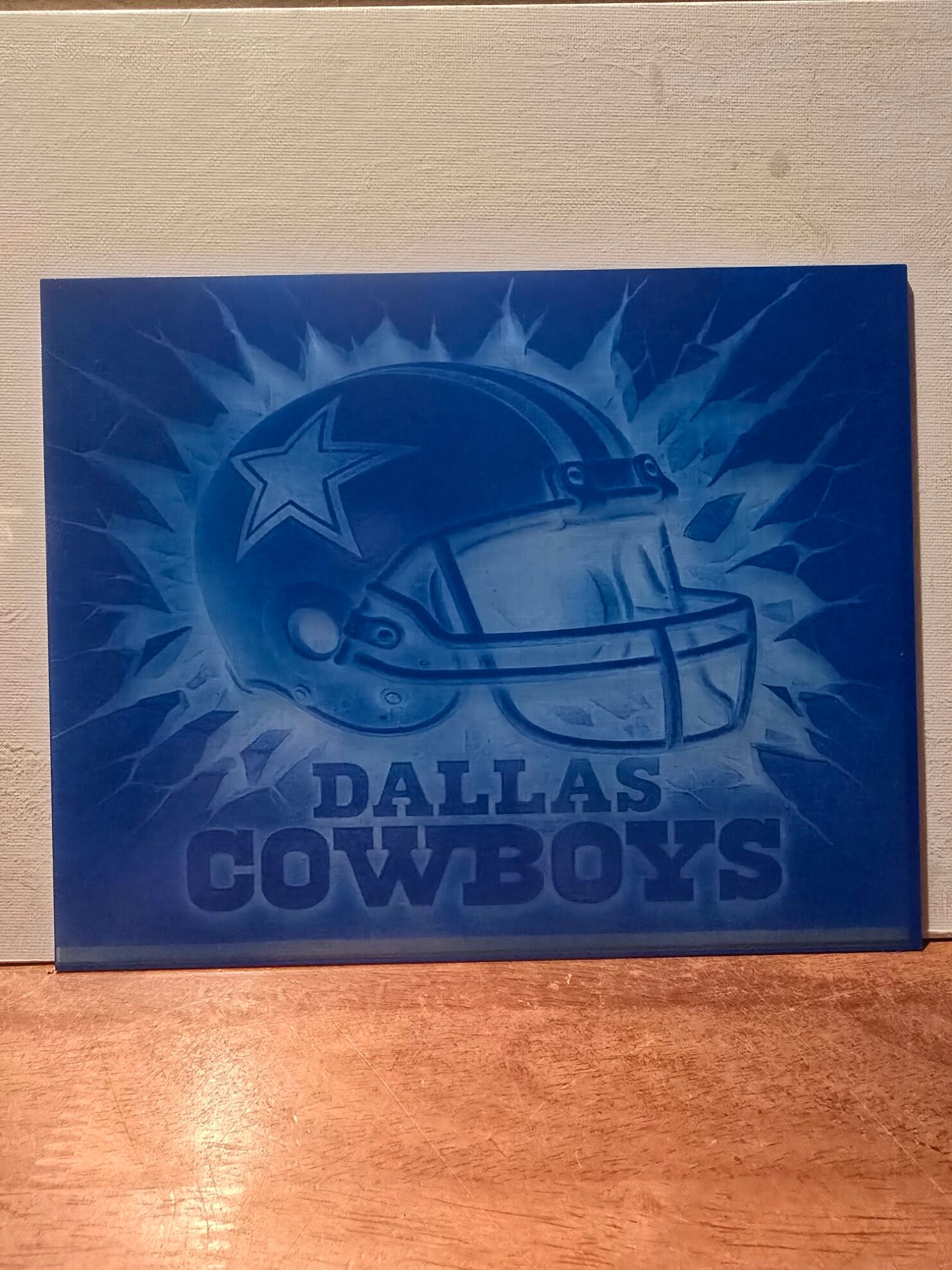 These 8Ă—10 display pieces are perfect for windows, game rooms, offices, garages, or fan caves, adding a bold football-themed accent wherever they are placed. The engraved design creates a unique contrast that looks incredible in both daylight and indoor lighting.